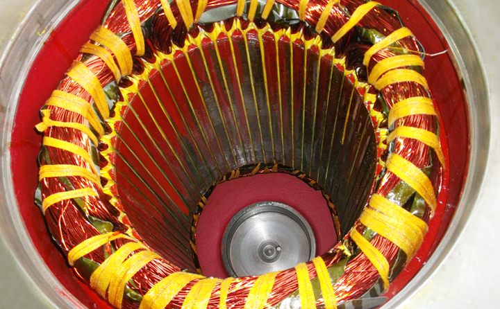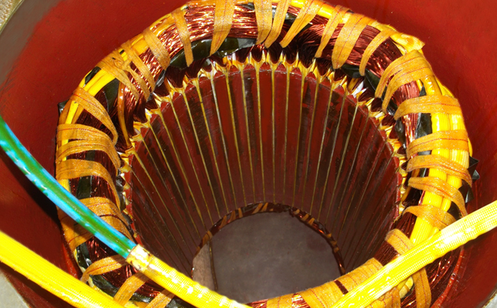 Devanado de estator/rotor con Cobre Esmaltado de Clase Térmica H/F con las especificaciones del fabricante. Barnizado y curado al horno para garantizar rigidez dieléctrica y resistencia mecánica.